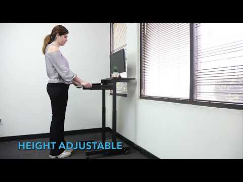 - HEIGHT ADJUSTABLE WORK STATION: With a minimum height of 31'' and maximum height of 41'', this adjustable height rolling laptop desk can be used as a sitting workstation cart, or a standing rolling computer desk. The universal size of this rolling computer desk stand is ideal as a stand up student desk, or a variable height computer desk.