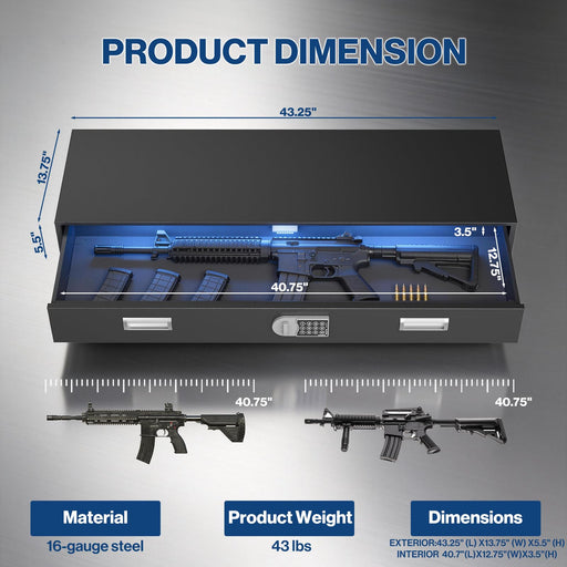 POCHAR Under Bed Gun Safe Drawer for AR Rifle - Long Storage Case for Car Trunk Gun Storage - Home Rifle & Pistols, Horizontal & Vertical G...