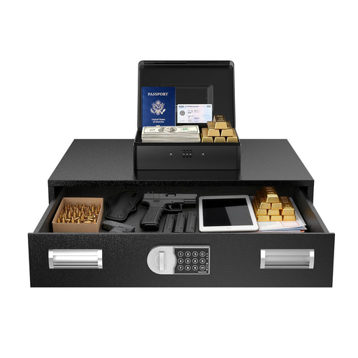 POCHAR Under Bed Gun Safe Drawer for Pistol - Long Steel Security Cabinet Storage for Home Car Trunk Vehicle - Underbed Safe Lock Box Set for Handg...