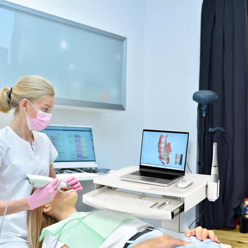 POCHAR Medical Trolley Cart with Scanner Holder and Drawer - Dental Clinic Laptop Cart with Wheels - Rolling Medical Laptop Cart for Hospitals &...
