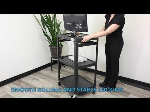 - ADJUSTABLE AV PROJECTOR CART: This heavy duty media roll cart includes adjustable height shelves ranging from 24 to 41.5 inches. You can choose to build one, two, or three layers of this rolling PC cart, or make height adjustments so you can work comfortably.