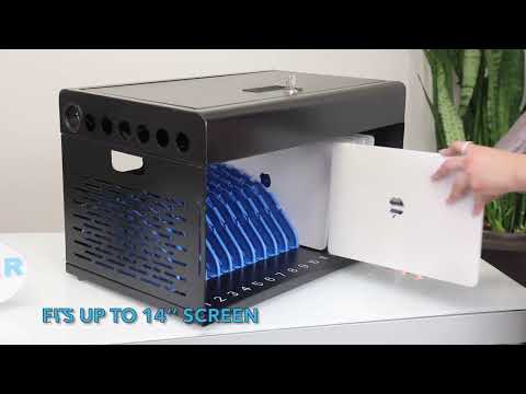 - FITS UP TO 14’’ SCREEN: Whether it is a small iPad, notebook, Chromebook, or big laptop, we guarantee it will fit perfectly in this classroom storage cabinet for laptops and iPads. Store and charge 16 devices (up to 14-inch) in this charging station for multiple devices!