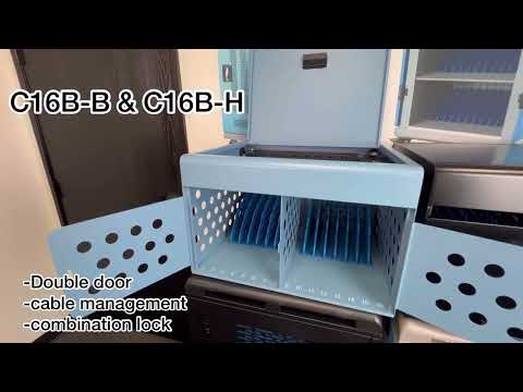 16-Device Charging Cabinet with Lock - Heavy Duty Steel Locking Laptop Storage Box - Full Enclosure for Privacy and Security - Comes with Cable Management and Ground Protection (Model C16D-H)