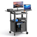 - MULTIPURPOSE: Our projector cart comes with a built-in power strip with 4 outlets, a 118.11" power cord to charge multi devices over long distances. Equipped with a pullout tray, silicone mat and cord management wrap to enhance your using experience. The practicality of this computer cart can also be use as standing desk, mobile laptop work station or mobile home office.