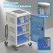 - User Friendly Designs: Removable back door for easy organization, built-in large push handle and rolling caster wheels for smooth mobility. The entire rolling laptop cart with storage only uses one wall outlet.
