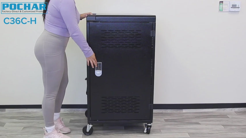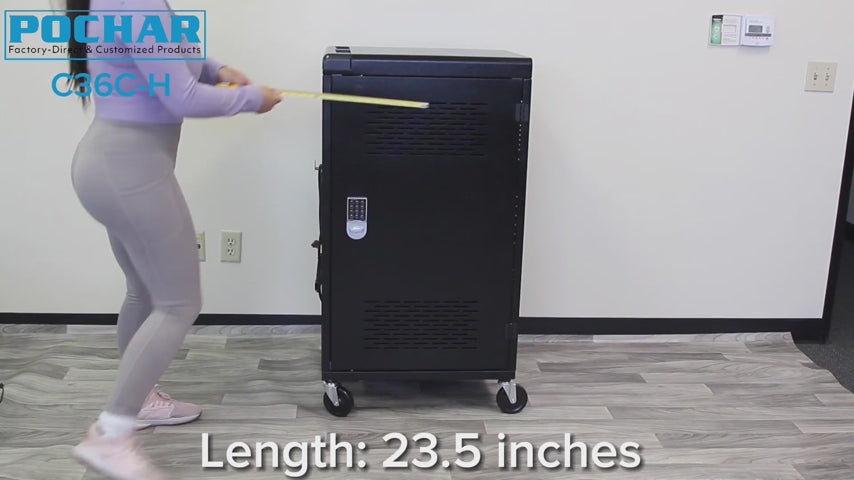 - 36 Device Charging Cart: Store, lock, and charge up to 36 devices with POCHAR's C36C-H mobile laptop cart. Our lockable computer cart for Chromebooks, laptops, and tablets is designed to fit devices with 14'' screens and 1.6'' thickness.