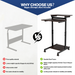 - SMOOTH ROLLING AND STABLE LOCKING: All four of our 2-inch caster wheels come with locking mechanism, so you can prevent unwanted movements when using this standing cart as a presentation cart. When you need to move this mobile computer cart with wheels, the smooth design of the wheels will glide seamlessly on flat carpets and wooden floor.